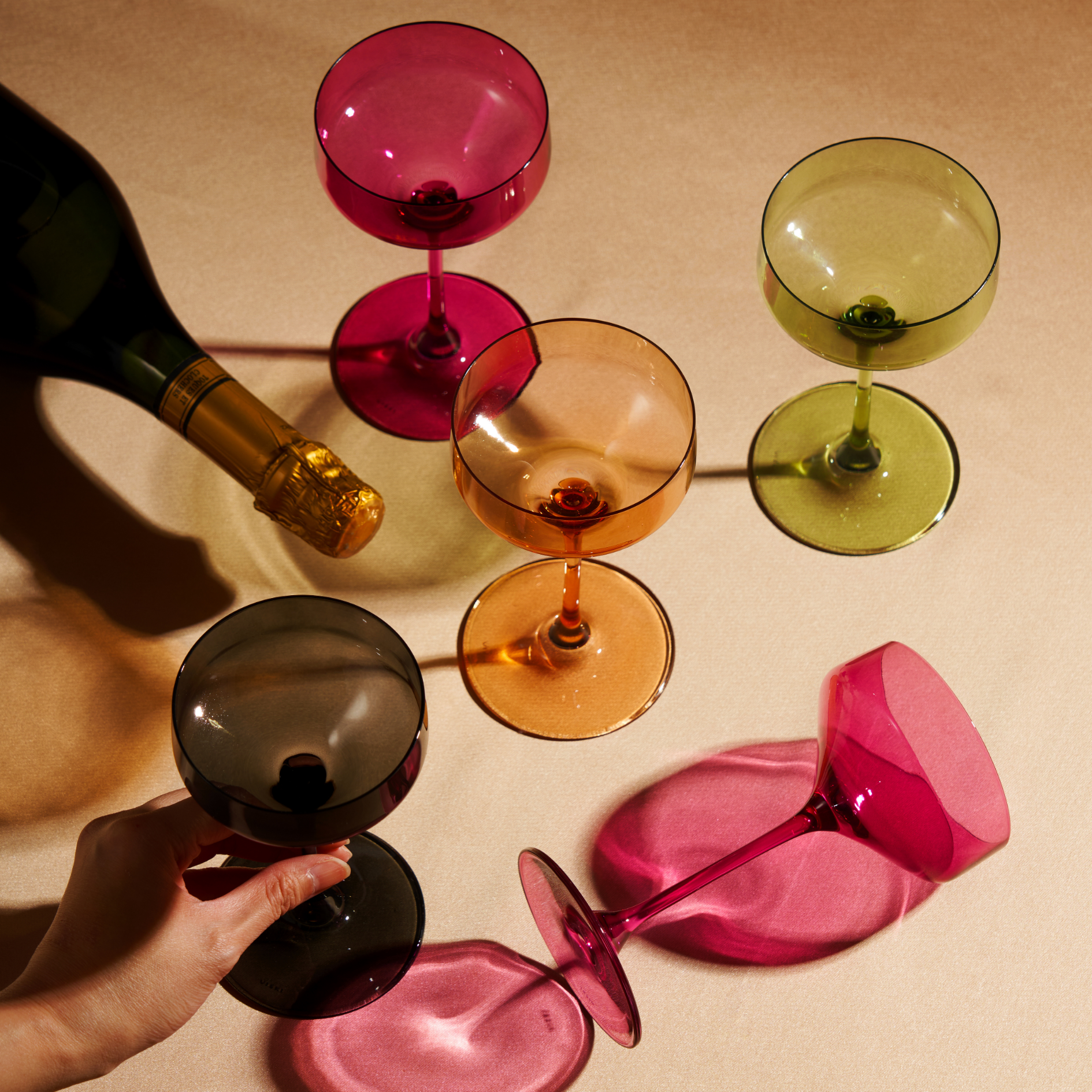 Crafted from European crystal with a gorgeous smoke gray hue, these coupe glasses bring a moody elegance to shaken cocktails. Add some color to your glassware collection with these stemmed cocktail glasses.