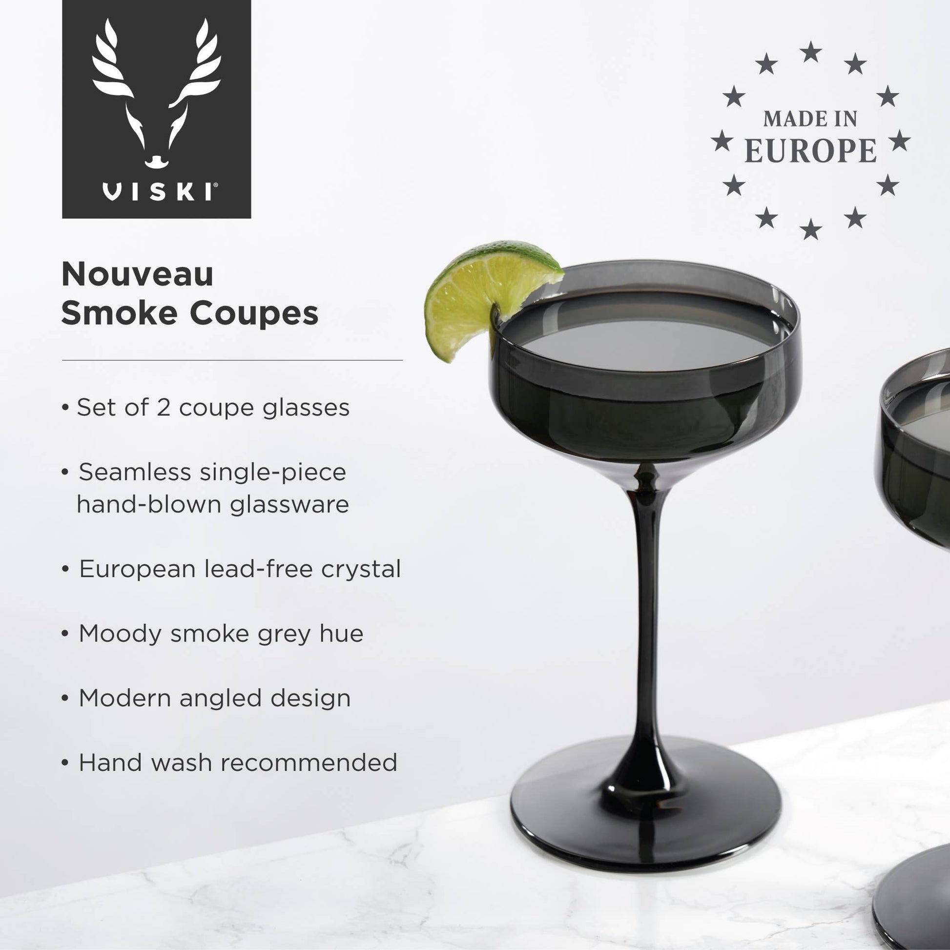 Viski Reserve Nouveau European Crystal Coupes Smoke | Set of 2